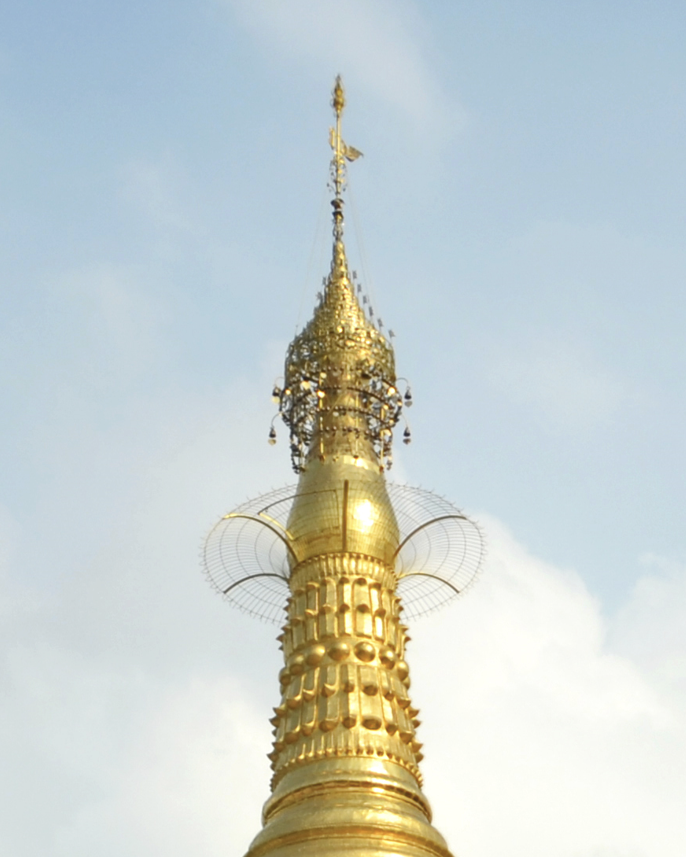 ထီးတော်၏ သက်တမ်းသည် စေတီတော်သက်တမ်းနှင့်အတူဖြစ်၍ နှစ်(၅၀)ကျော် (၆၀) နီးပါးရှိပြီဖြစ်၍ မခိုင်ခန့်ဘဲ အရောင်မှိန်လာပြီဖြစ်၍ (၃၀-၁၂-၂ဝဝ၇)၊ ၁၃၆၉-ခုနှစ်၊ နတ်တော်လပြည့်ကျော်(၆)ရက်နေ့ တွင် ထီးတော်ဟောင်းကိုချ၍ ၁၃၆၉ – ခုနှစ်၊ ပြာသိုလ်လပြည့် (၂၂-၁-၂၀ဝ၈)နေ့တွင် သံမဏိအစစ် ရွှေထီးတော်သစ်ကြီးကို တင်လှူပူဇော်ခဲ့ပါသည်။ နာဂစ်မုန်တိုင်းကြီး ကျရောက်စဉ်တွင်လည်း ထီးတော်ကြီးသည် မပျက်မစီးဘဲ တည်ရှိခဲ့ပါသည်။