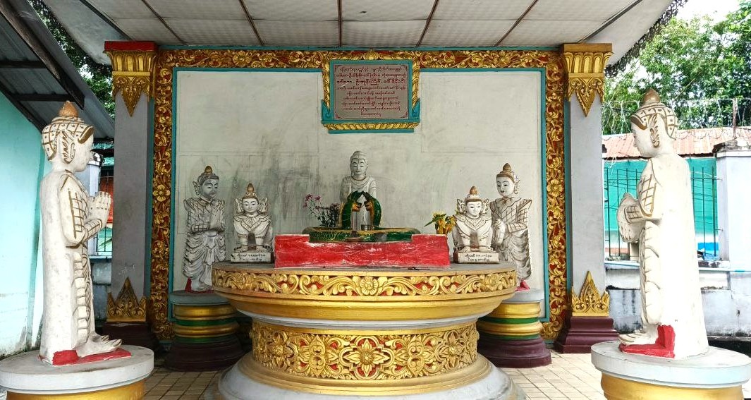 အလှူရှင်ဘုရားဒါယကာ နေလသစ္စာဆရာကြီး ဦးပညာသိဒ္ဓိ (ခ) ဆရာတော် ဦးဩဘာသ၊ ဘုရားဒါယိကာမ–ရဟန်း မယ်တော် ဧကံသမနောပညာရှင် ဆရာမကြီး ဒေါ်နန်းစန္ဒာ၊ ဘုရားဒါယကာ–ဒုတက ဆရာကြီး ဦးဖြူထွေး+ဒေါ်မြသက်မူတို့က မတည်တည်ထား ပူဇော်ပါသည်။ ဦးလှဘော်+ဒေါ်တူး၊ ဒေါ်စိန်ရွှေတို့က မတည်၍ တံခွန်တိုင်များ၊ မဟာတံတိုင်း၊ ကြွေပြားများကို အများကောင်းမှုဖြင့် ကမ္ပည်းများထိုး၍ လှူဒါန်းထားပါသည်။ သတ္တာဟဝင်းအတွင်း၌ တည်ရှိပါသည်။