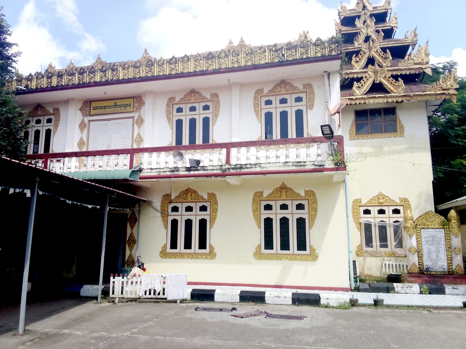 စောင်းတန်းတော်ကြီး ဘေးကပ်လျက်ရှိပြီး ဩဝါဒစရိယ ဆရာတော်များ ၊ အလှူရှင်များ ၊ ဧည့်ပရိသတ်များအား ဧည့်ခံခြင်း ၊ မင်္ဂလာပွံ အခမ်းအနားကျင်းပခြင်း။