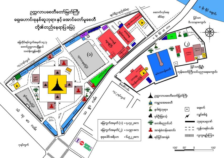၁၉၉ဝ ပြည့်နှစ် ဖေဖော်ဝါရီလ ၁၅ ရက်နေ့တွင် အိုးအိမ်ဦးစီးဌာနမှ တာဝန်ရှိသူများ ကွင်းဆင်း လေ့လာတိုင်းတာ၍ လမ်းမြေ ပေ ၈ဝ ချန်ကာ ဥက္ကလာပစေတီတော်မြတ်ကြီးအတွက် မြေကွက်အမှတ် (၁) တွင် ၄.၁ဝ၆ ဧက၊ ဂန္ဓကုဋိတိုက်နှင့် အောင်တော်မူစေတီအတွက် မြေကွက် အမှတ် (၂)တွင် ၁.၅၉၁ ဧက၊ စုစုပေါင်း ၅.၆၉၇ ဧကတို့ကို ညှိနှိုင်း သဘောတူညီခဲ့ကြပါသည်။ နိုင်ငံတော်က ၁၉၈၉ ခုနှစ် ဇူလိုင်လ ၇ ရက်နေ့တွင် ဝတ္ထုကံမြေ ဝ.၈၂၅ ဧကကို ထပ်မံဖြည့်စွက်လှူဒါန်းပေးခဲ့ပါသည်။ ၁၉၉ဝ ပြည့်နှစ် ဧပြီလ ၆ ရက်နေ့တွင် ပြည်ထောင်စု မြန်မာနိုင်ငံတော်သမ္မတကိုယ်စား အိုးအိမ်ဦးစီးဌာနနှင့် ဥက္ကလာပစေတီတော် ရှေးဟောင်းခုနစ်ဆူဘုရားဂေါပကအဖွဲ့တို့ စာချုပ်ချုပ်ဆိုသည့်အခါ ရန်ကုန်မြို့၊ တောင်ဥက္ကလာပမြို့နယ်၊ မြေတိုင်းရပ်ကွက်အမှတ် စုပေါင်းမြင်သာမြေကွက်အမှတ်(၁)နှင့်(၂)အတွင်း တည်ရှိသော ၅.၆၉၇ ဧကကို နိုင်ငံတော်ကလှူဒါန်းမှုအတွက် စာချုပ်ချုပ်ဆိုခဲ့ပါသည်။ ထို့ကြောင့် နိုင်ငံတော် အစိုးရက ဥက္ကလာပစေတီတော်မြေကွက်အမှတ်(၁)အတွက် ၄.၇၃၂ ဧကနှင့် ဂန္ဓကုဋိတိုက်နှင့် အောင်တော်မူစေတီမြေကွက်အမှတ်(၂) အတွက် ၁.၇၉ ဧက၊ စုစုပေါင်း ဝတ္ထုကံမြေဧရိယာ ၆.၅၂၂ ဧက အထိ တိုးမြှင့်လှူဒါန်းပေးခဲ့ပါသည်။